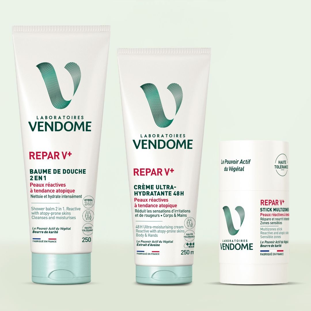 Pour les zones particulièrement sensibles de votre corps, appliquez le Stick Multizones Laboratoires Vendôme pour réparer et nourrir intensément.