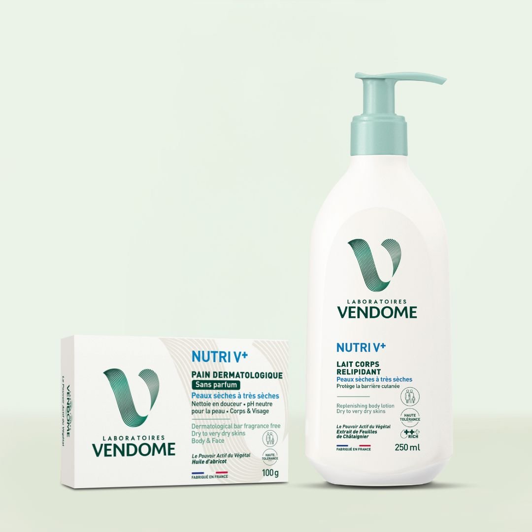Appliquez ensuite le Lait Corps Relipidant Laboratoires Vendôme pour nourrir immédiatement votre peau et profiter d'une hydratation 24H.